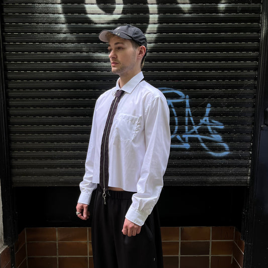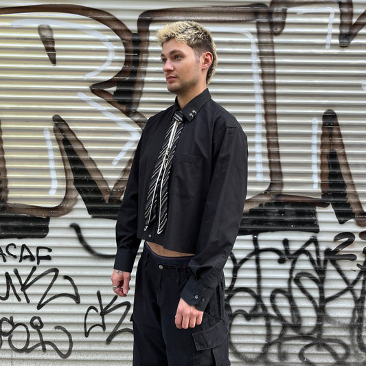 upcycled shirt & tie black grey white